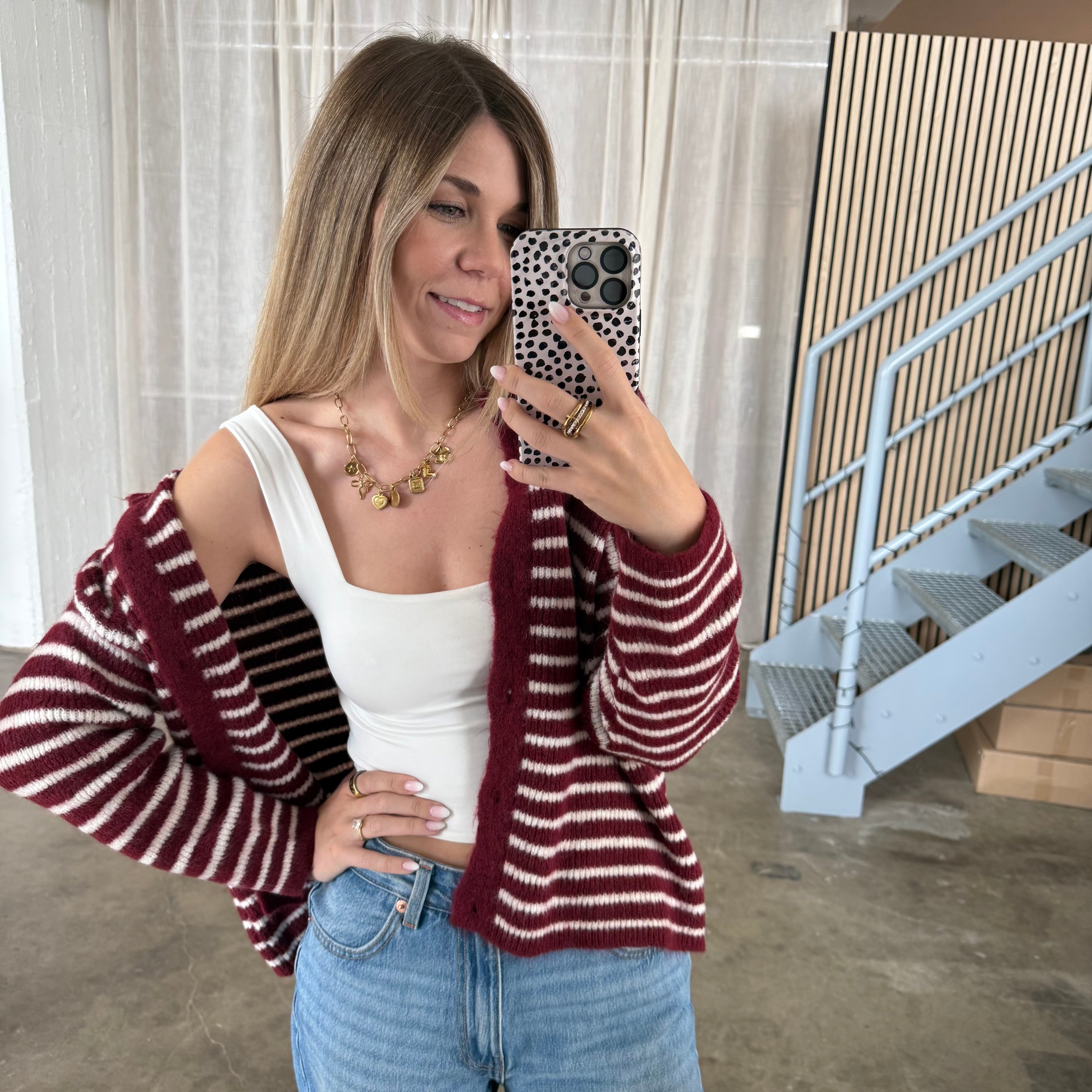 Strickjacke Small Stripes - Bordeaux