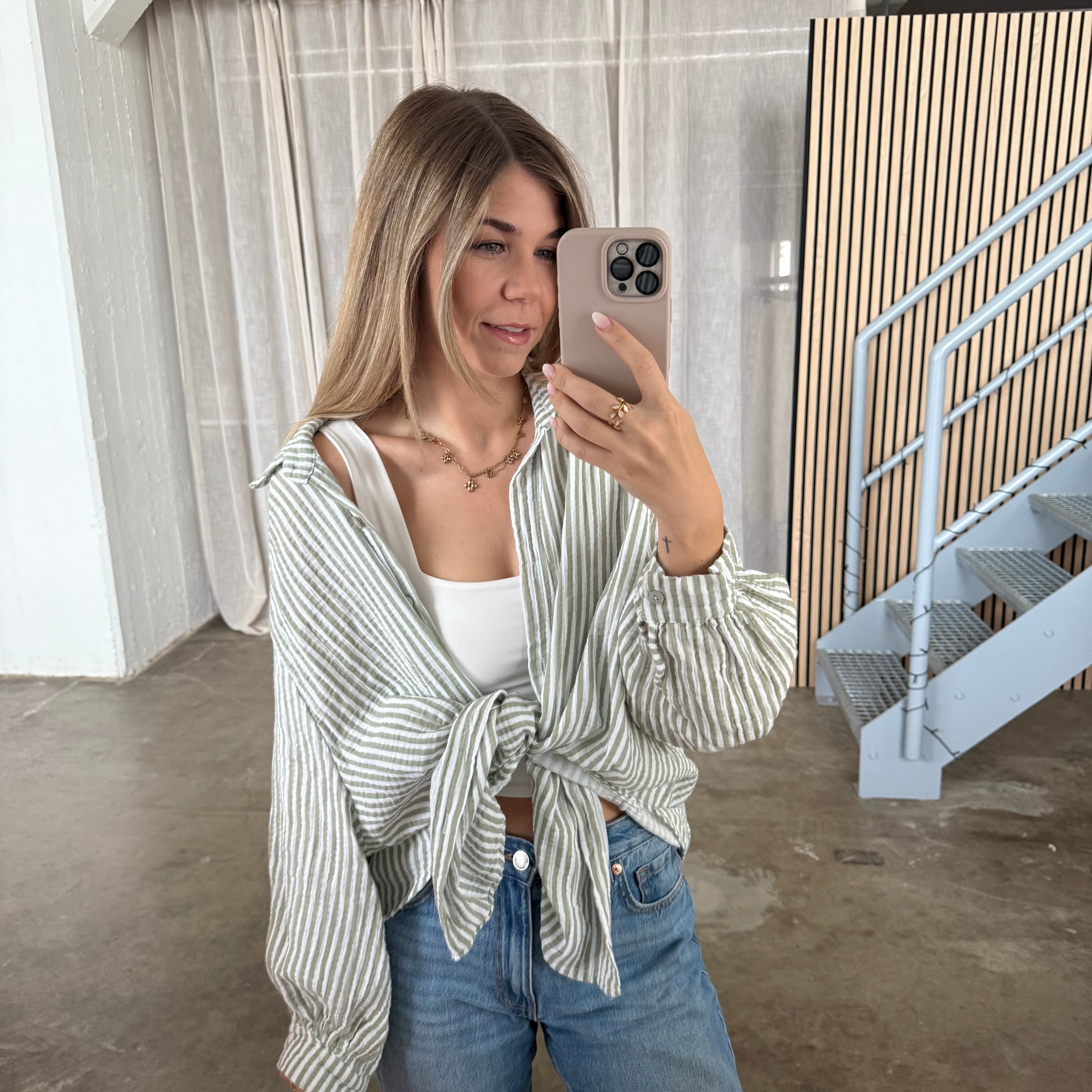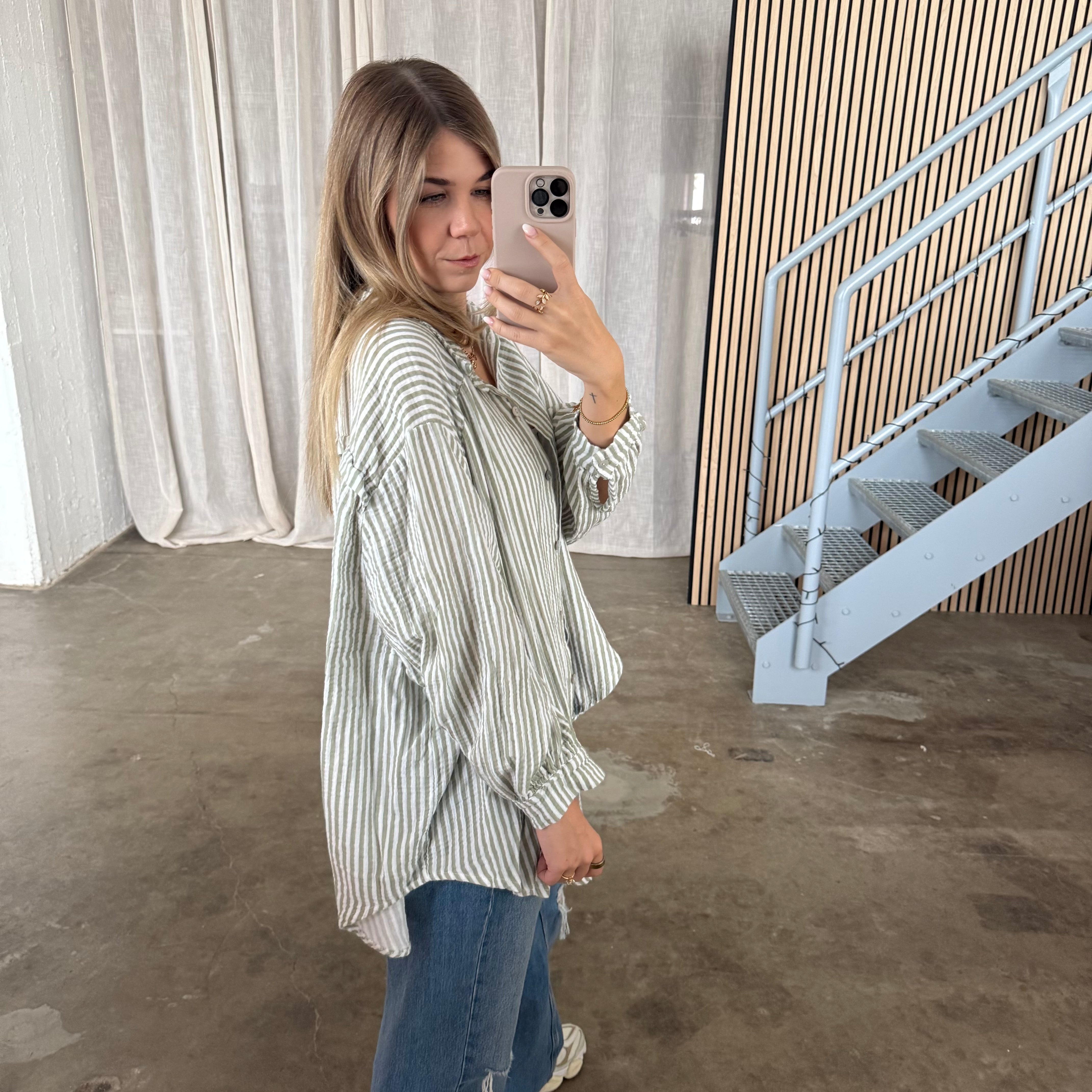 Musselinbluse Streifen - Lime x Weiß
