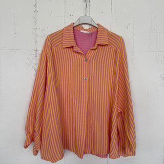 Musselinbluse Leo - Pink x Orange x Weiß