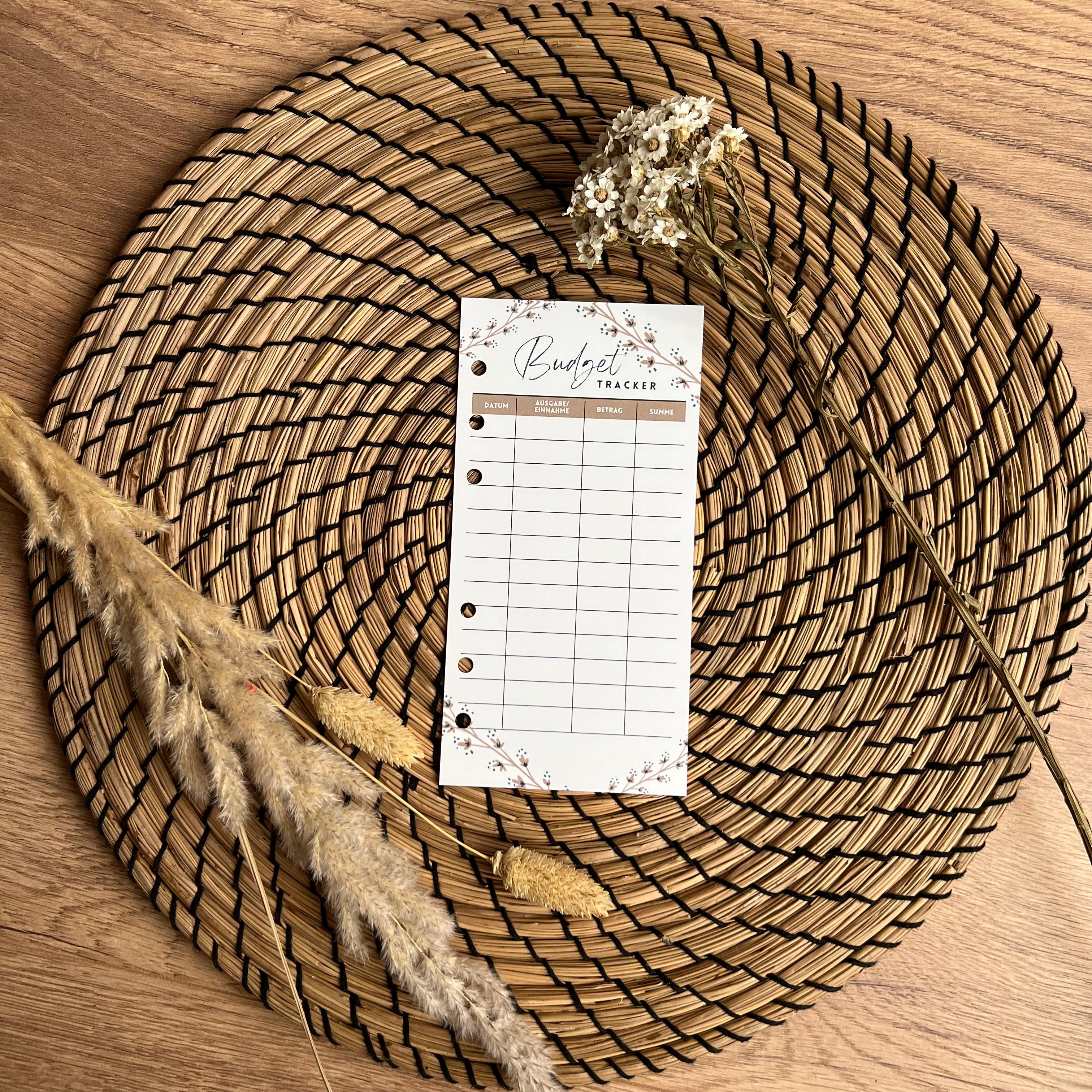 Die Sheets haben die Größe 17x8.5 und sind zum Einheften vor den Umschlägen in Euren A6 Binder. So könnt ihr jede Ausgabe direkt aufschreiben und habt eine gute Übersicht für den Wochen- und Monatsabschluss.