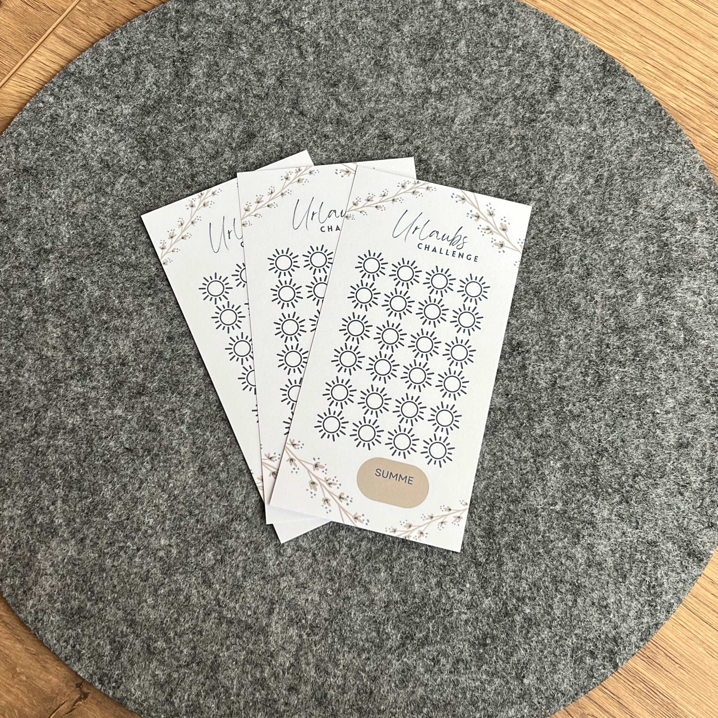 Du erhältst die Challenge als Ausdruck auf 160g starkem matten Papier und beidseitig bedruckt. So kannst Du sie zweimal spielen.