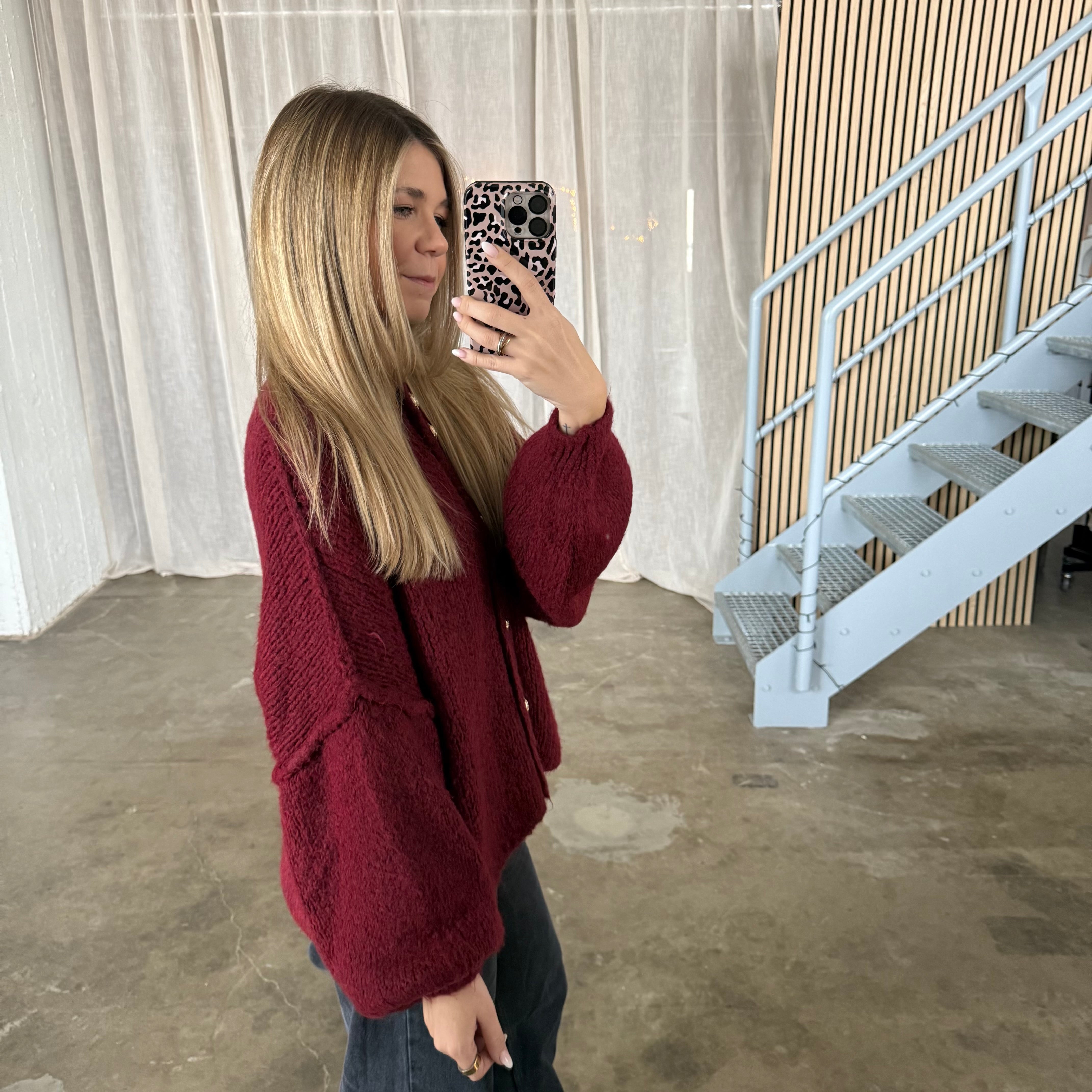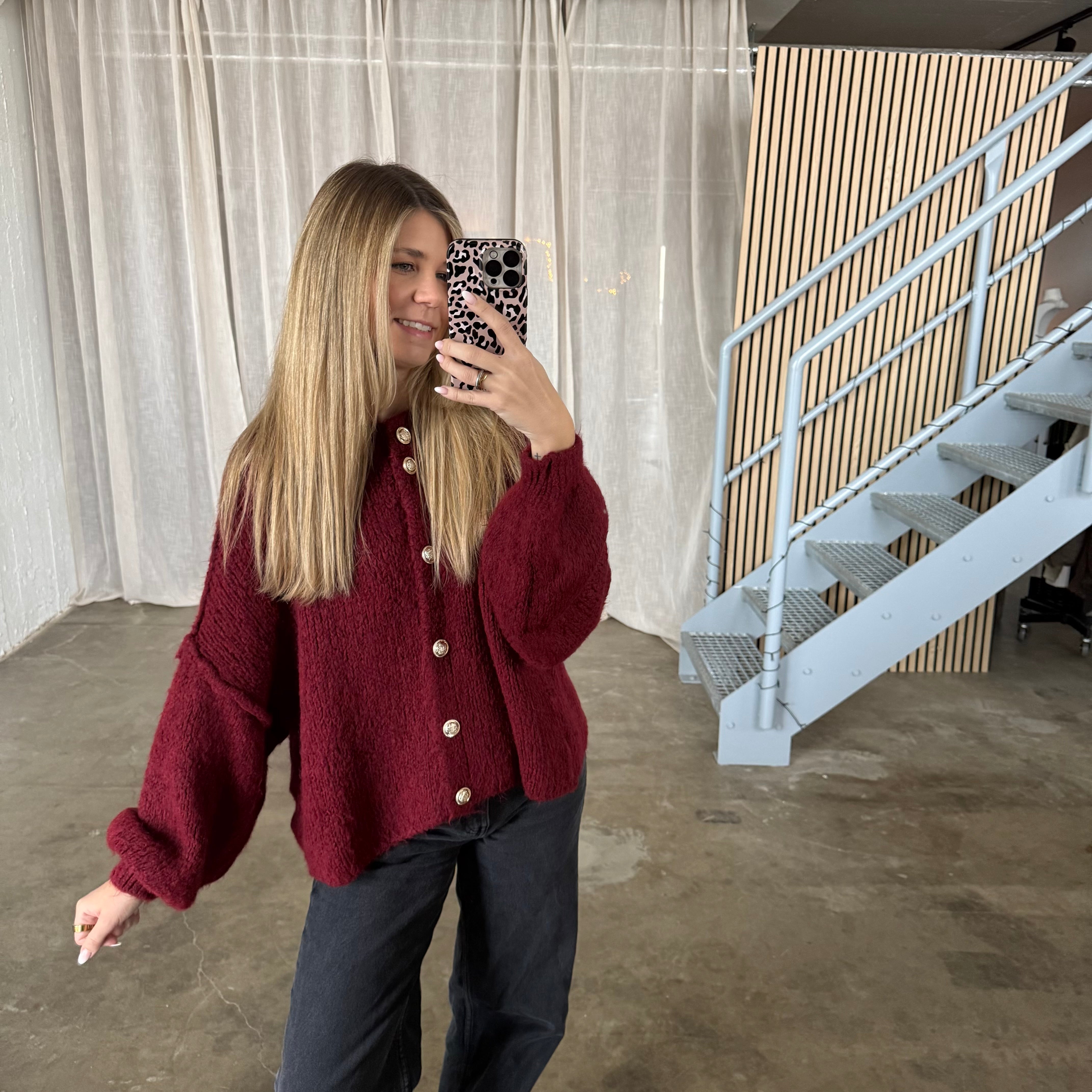 Chunky Strickjacke - Bordeaux