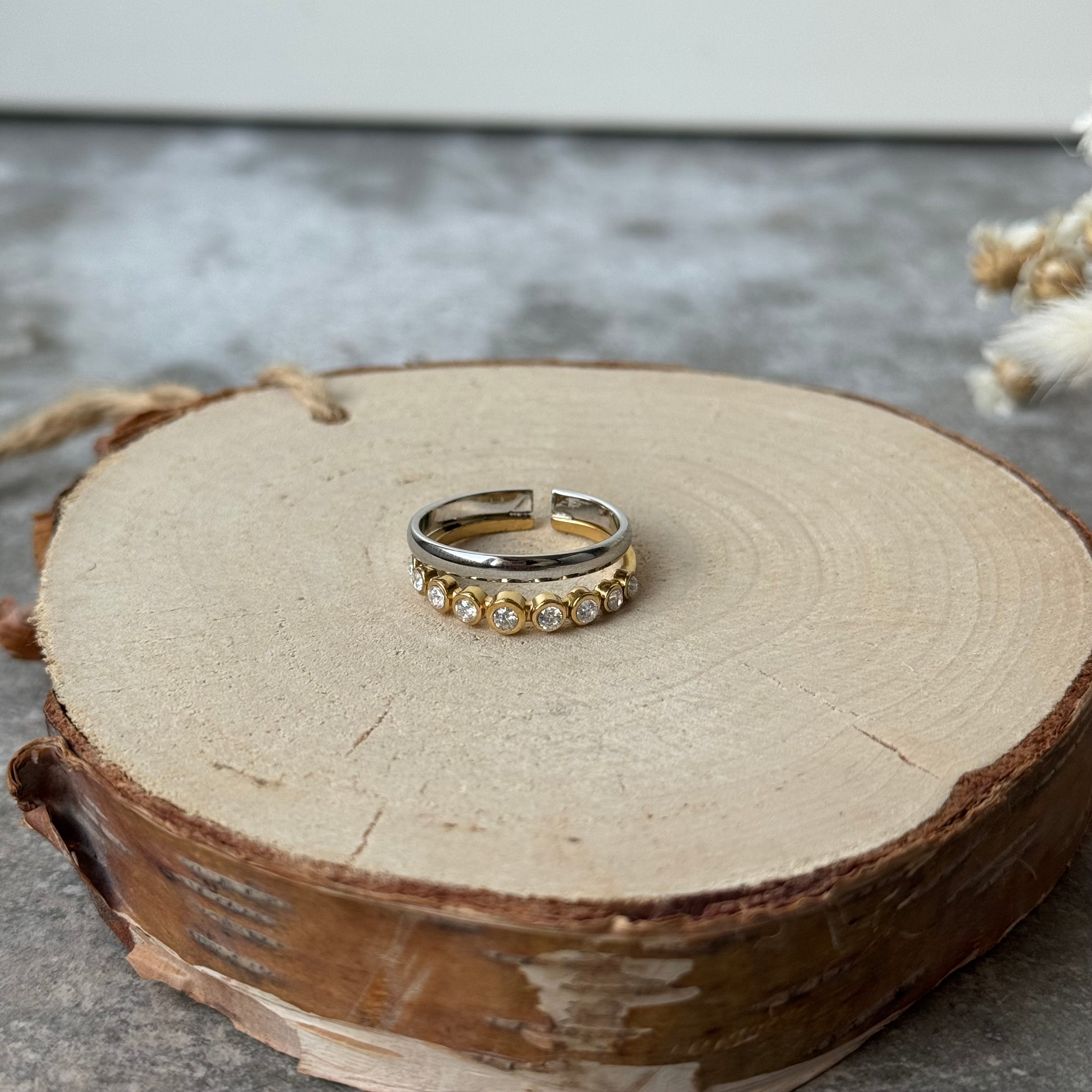 Diamond Row Ring | Plain Bicolour