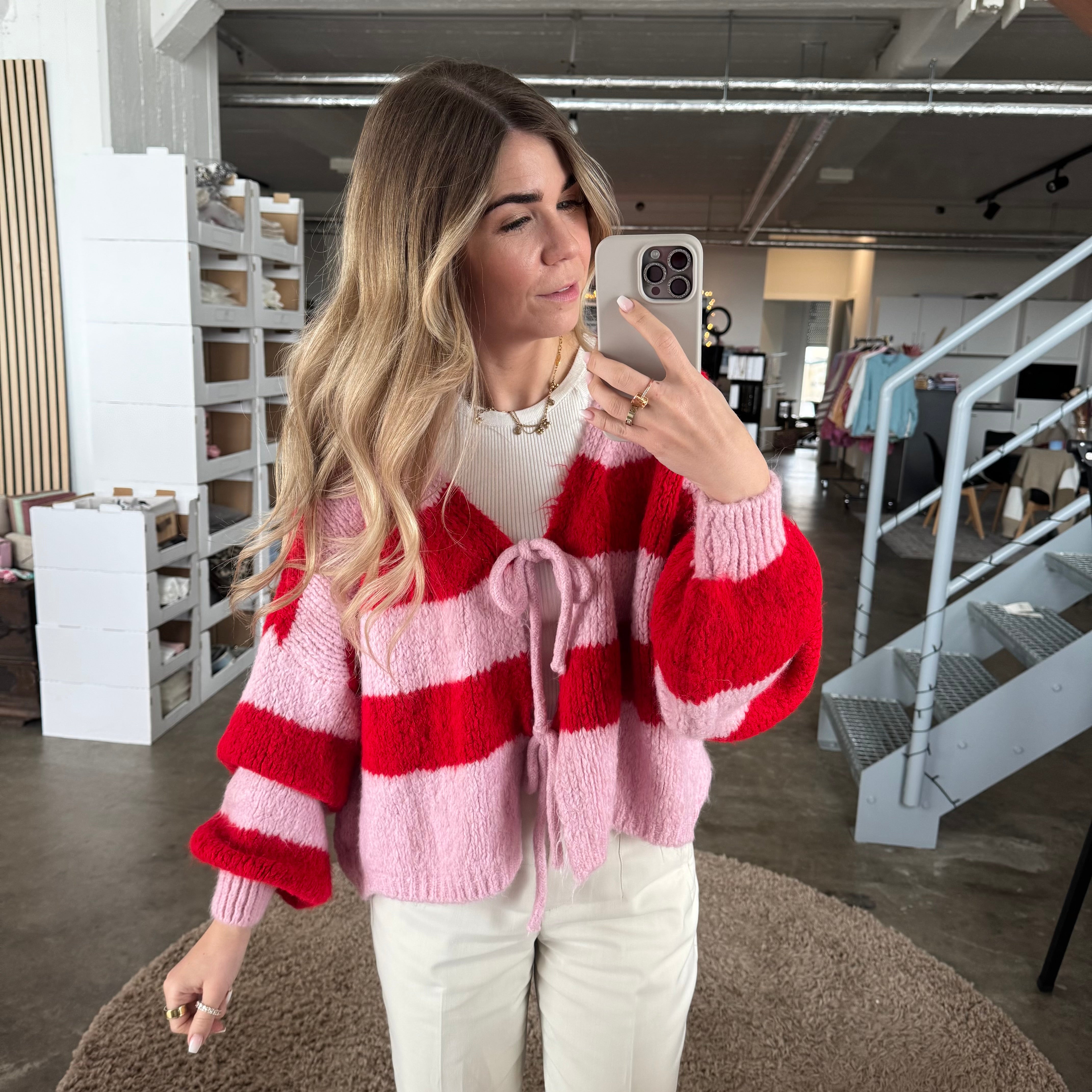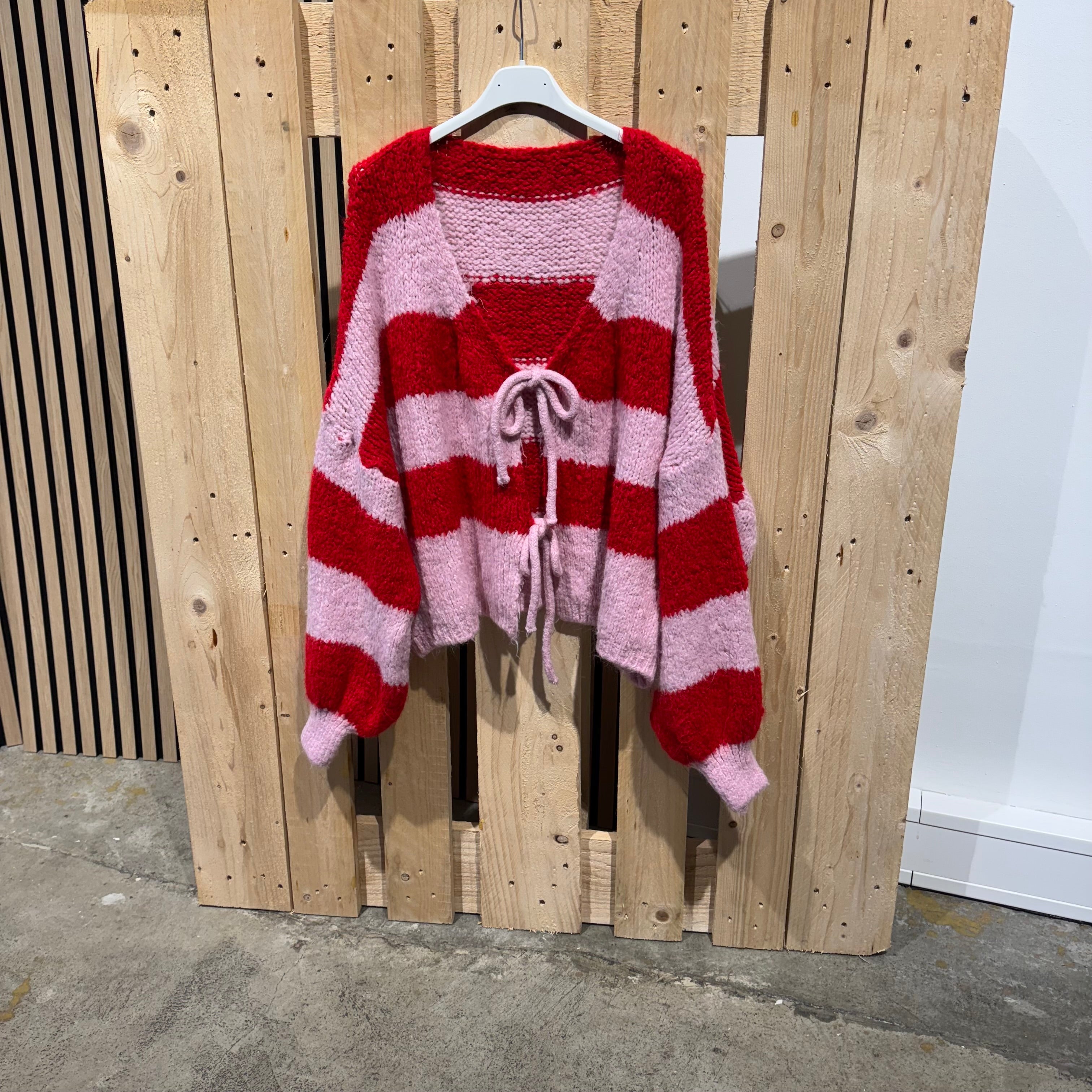 Strickjacke Schleifen & Streifen - Rot x Rosa