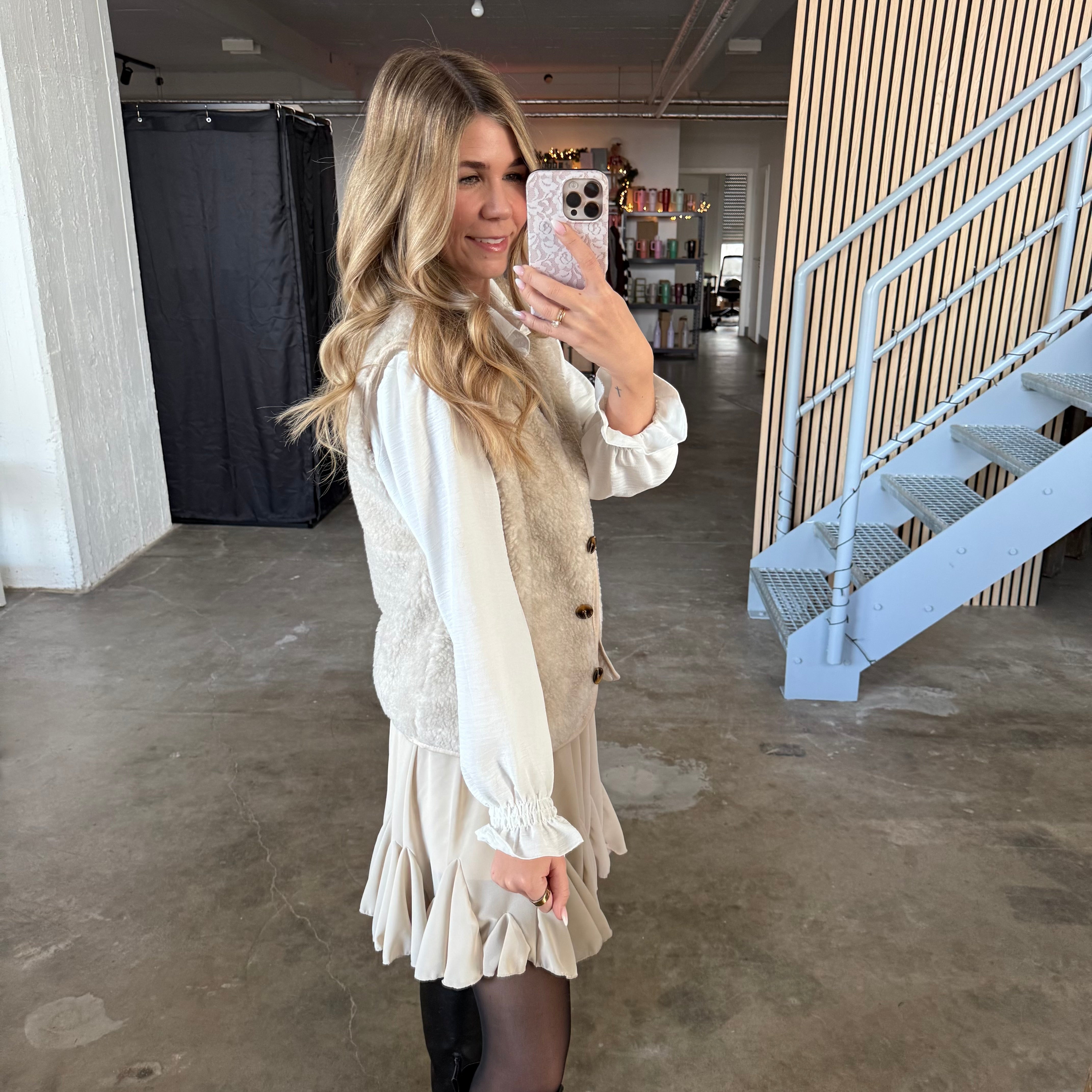 Button Teddy Weste - Creme