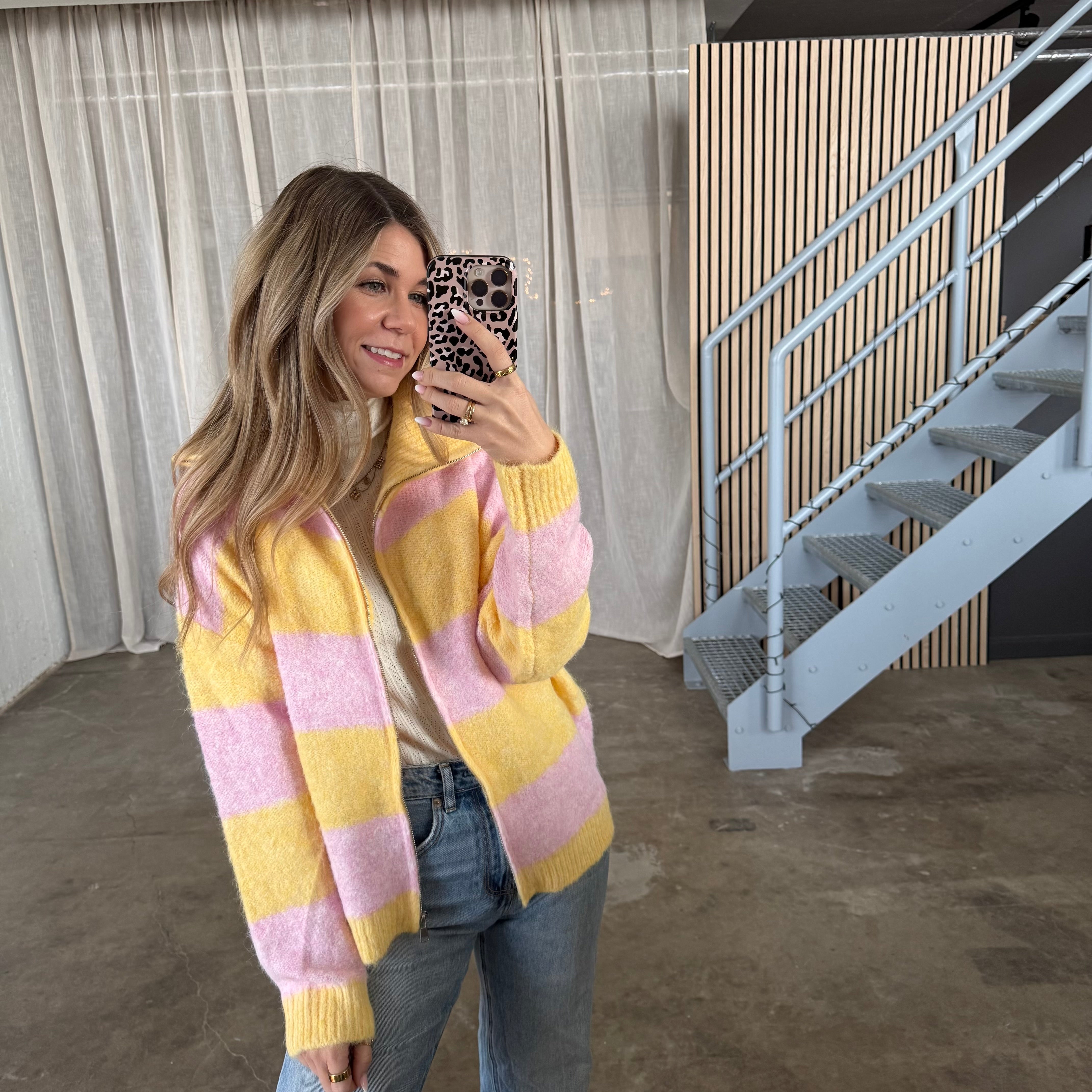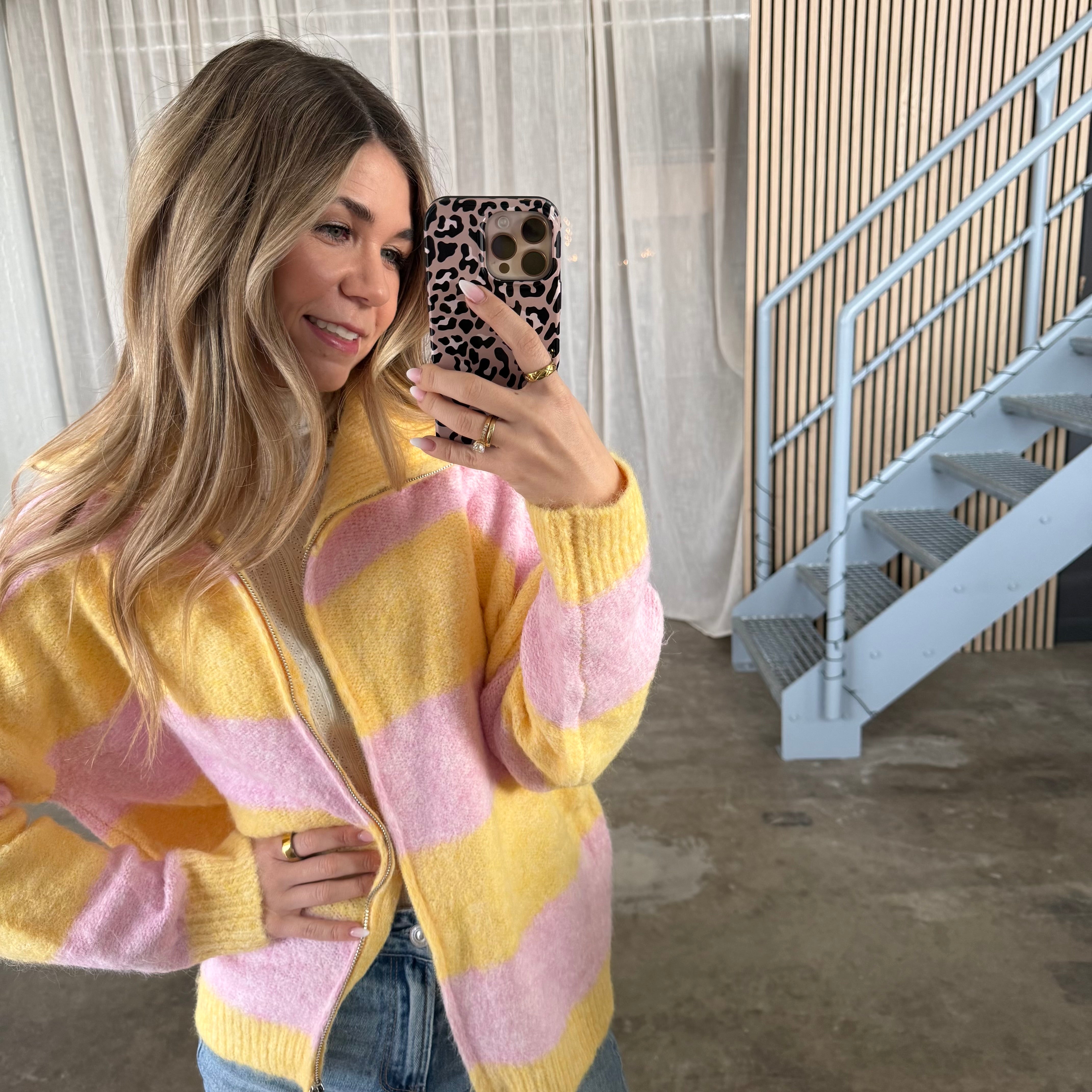 Die Strickjacke Romy in Rosa x Beige ist einfach traumhaft schön! 💕 Die Farbkombination wirkt super harmonisch und lässt sich toll kombinieren – egal ob mit Jeans, Stoffhose oder Kleid.