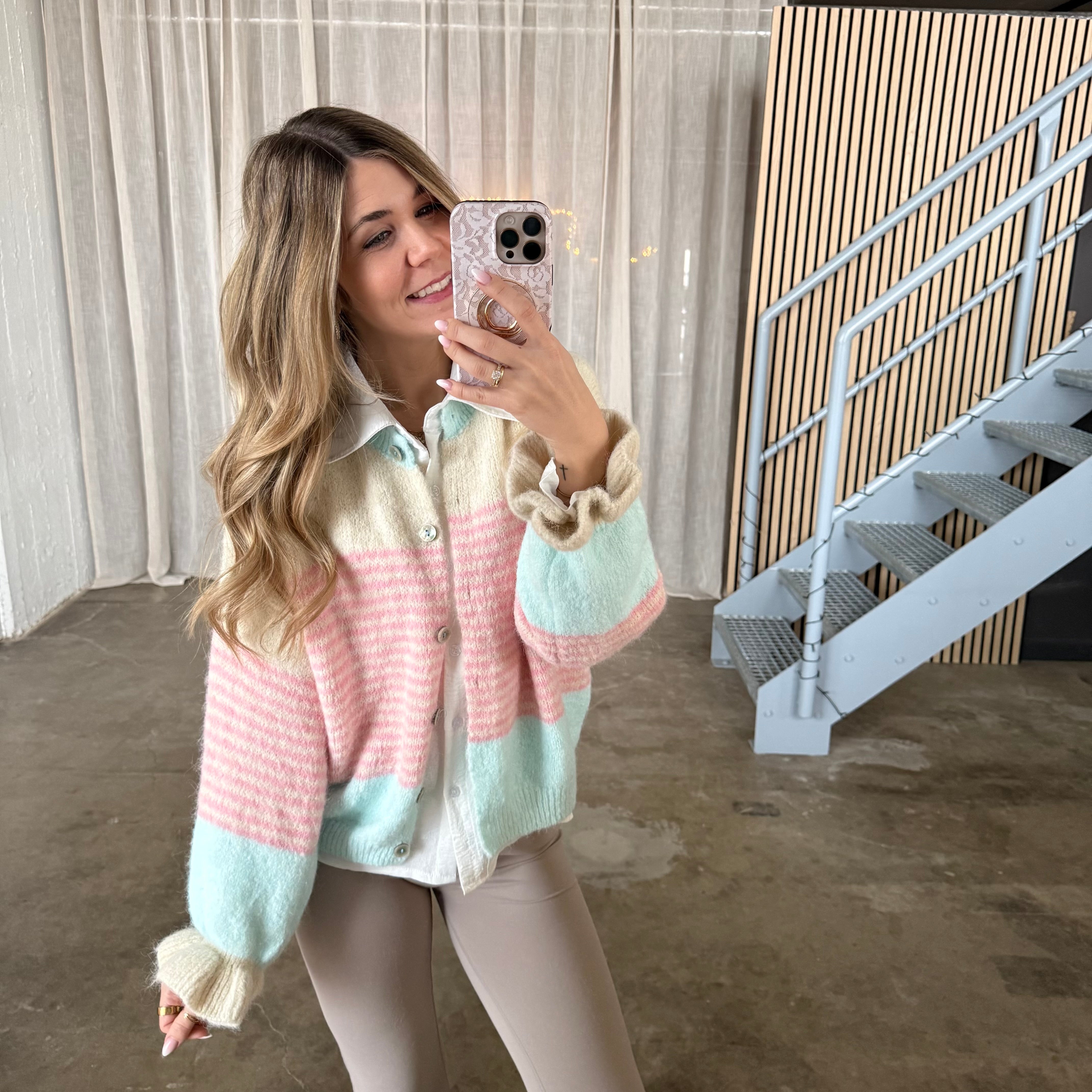 Die Strickjacke Romy in Rosa x Beige ist einfach traumhaft schön! 💕 Die Farbkombination wirkt super harmonisch und lässt sich toll kombinieren – egal ob mit Jeans, Stoffhose oder Kleid.