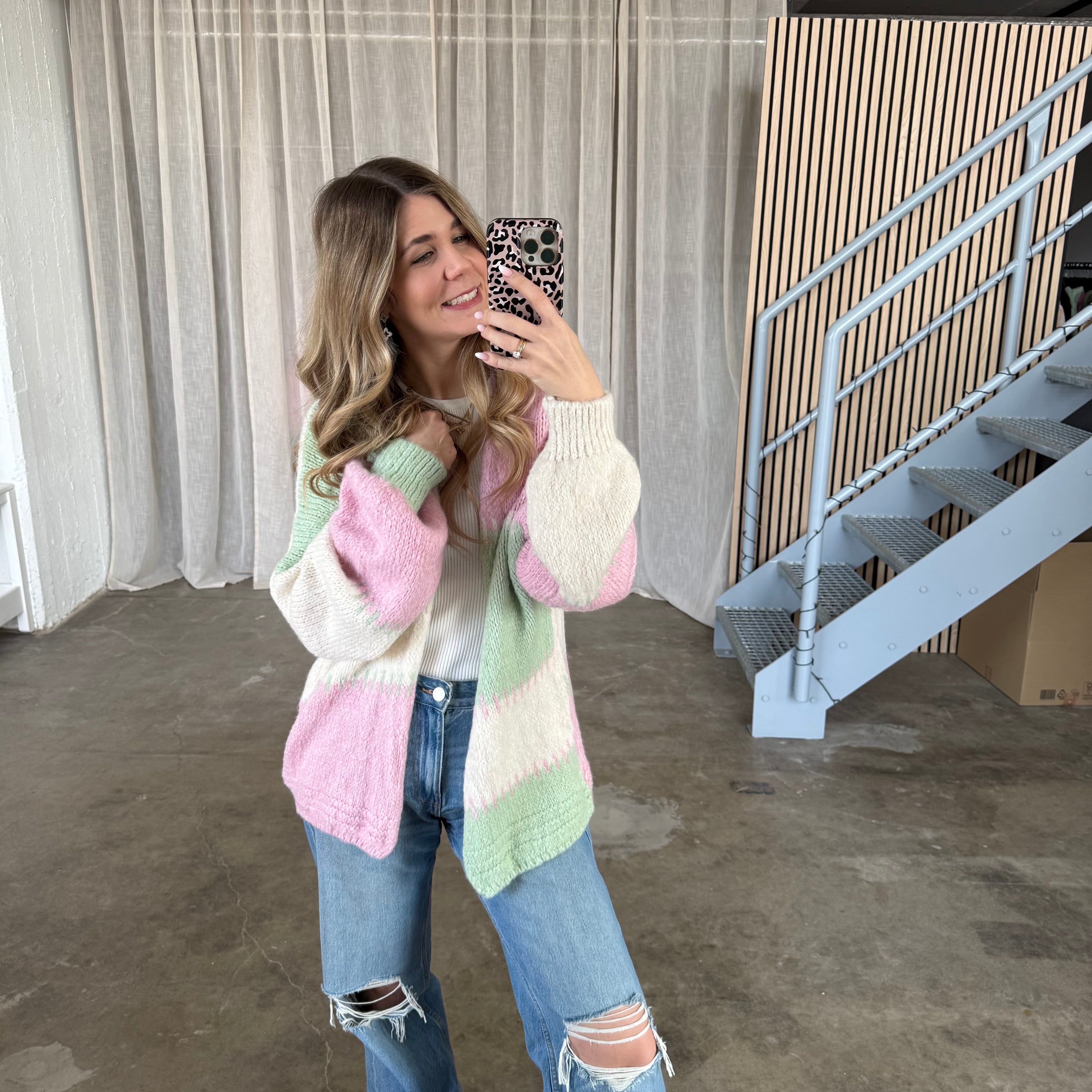 Die Strickjacke ist super flauschig. Die Farben sind genau wie auf dem Bild. Ich hab mich jetzt schon verliebt & freue mich, sie zu tragen 🥰