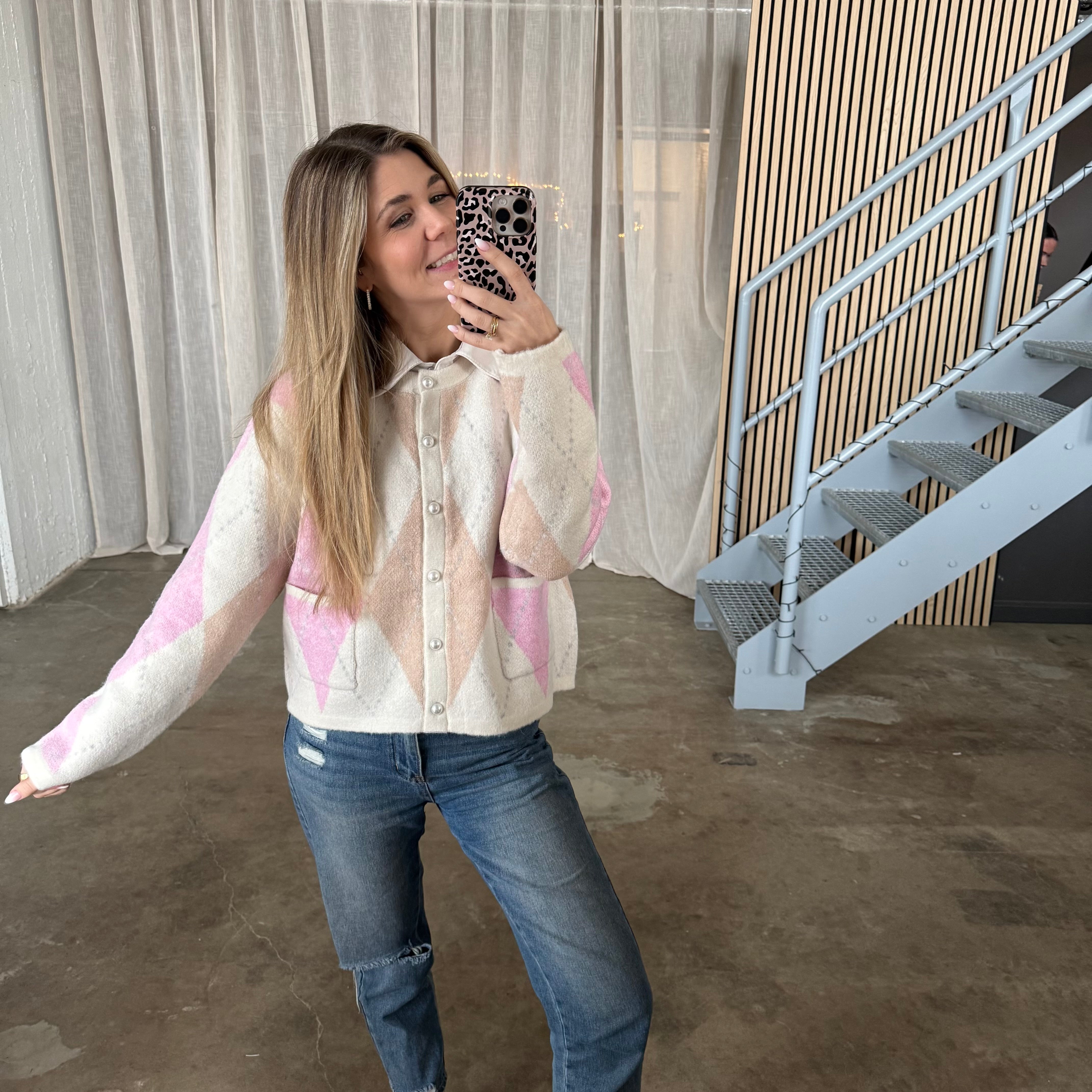 Die Strickjacke Romy in Rosa x Beige ist einfach traumhaft schön! 💕 Die Farbkombination wirkt super harmonisch und lässt sich toll kombinieren – egal ob mit Jeans, Stoffhose oder Kleid.