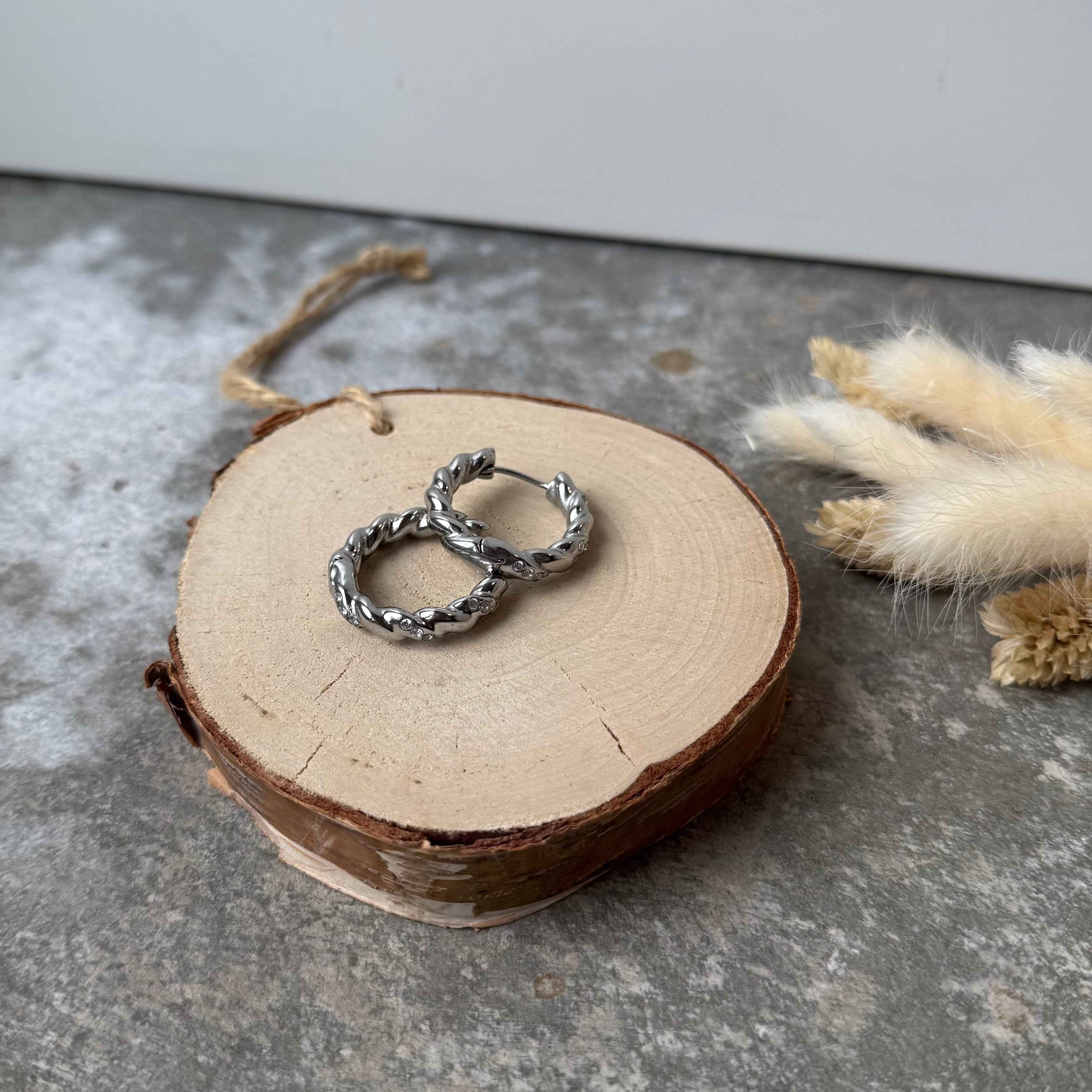 TWIST & DIAMOND Creolen | Strass Silber
